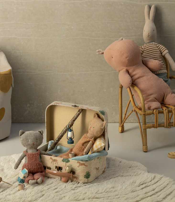 Stuffed animal made from linen-cotton fabric, with recycled polyester/PE granulate filling