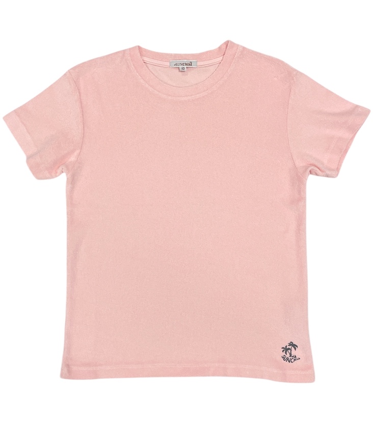 Lightweight T-shirt made from fine terry cloth with a round neckline and logo print.