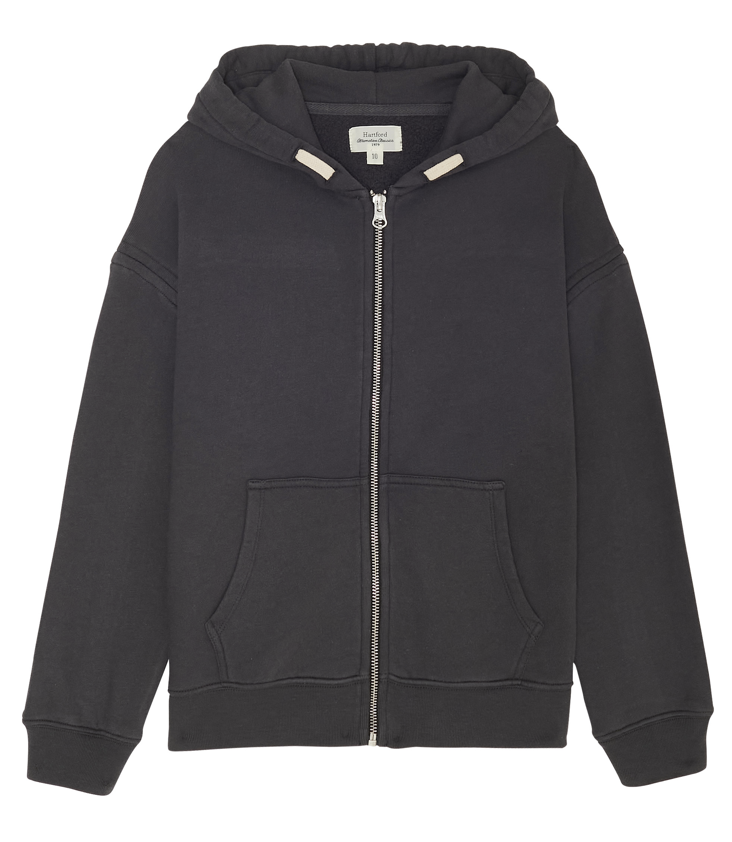 Hooded sweatshirt in soft fleece. Long sleeves and zipper closure. Two front pockets. Ribbed cuffs and hem with side slits. Topstitching details. Brushed interior.
