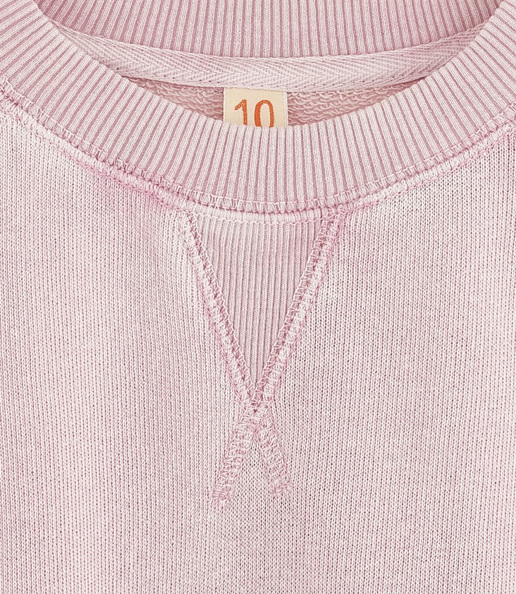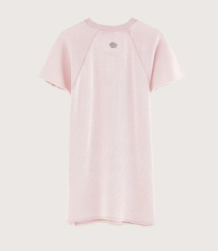 Lightweight sweatshirt dress with crewneck and short butterfly sleeves. Open edges and washed-out vintage look. Length: just below the knee. Small side slits.