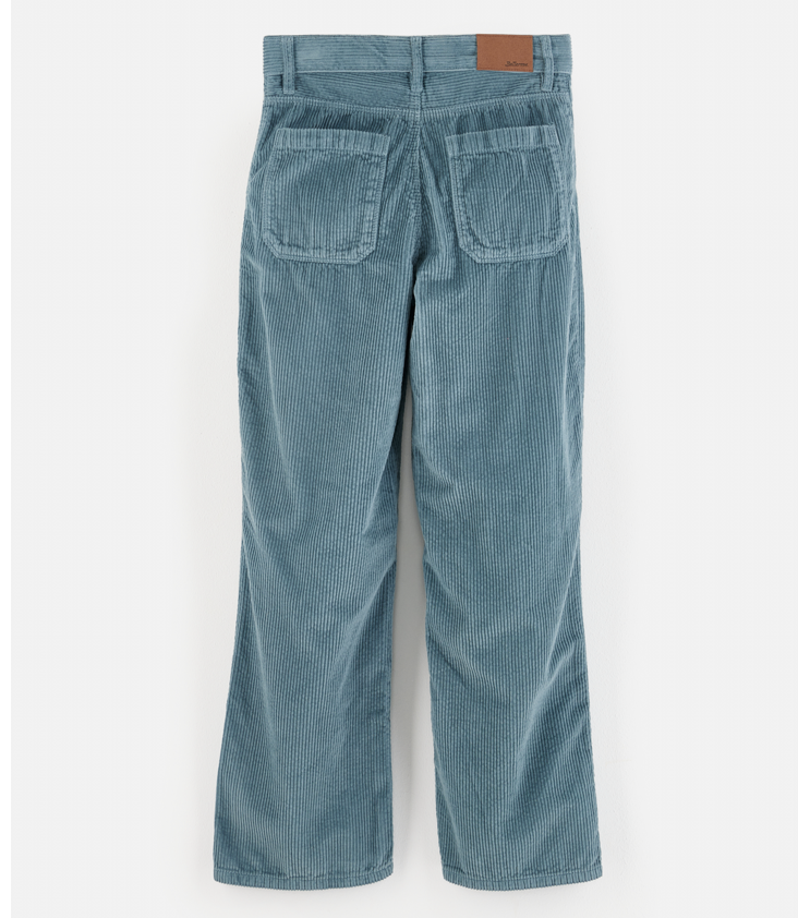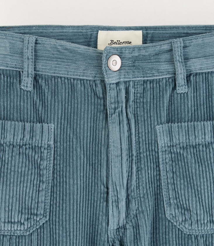 Straight cut corduroy pants, with patched-on pockets and adjustable waist