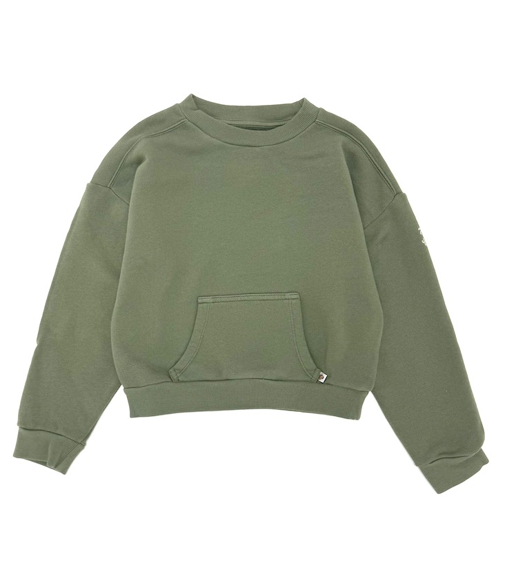 Soft cotton sweather with a kangaroo pocket and round neckline.
