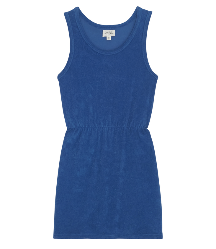 Towelling cotton Tehila dress for girls. Elasticated waist, rounded bottom and sleeveless.