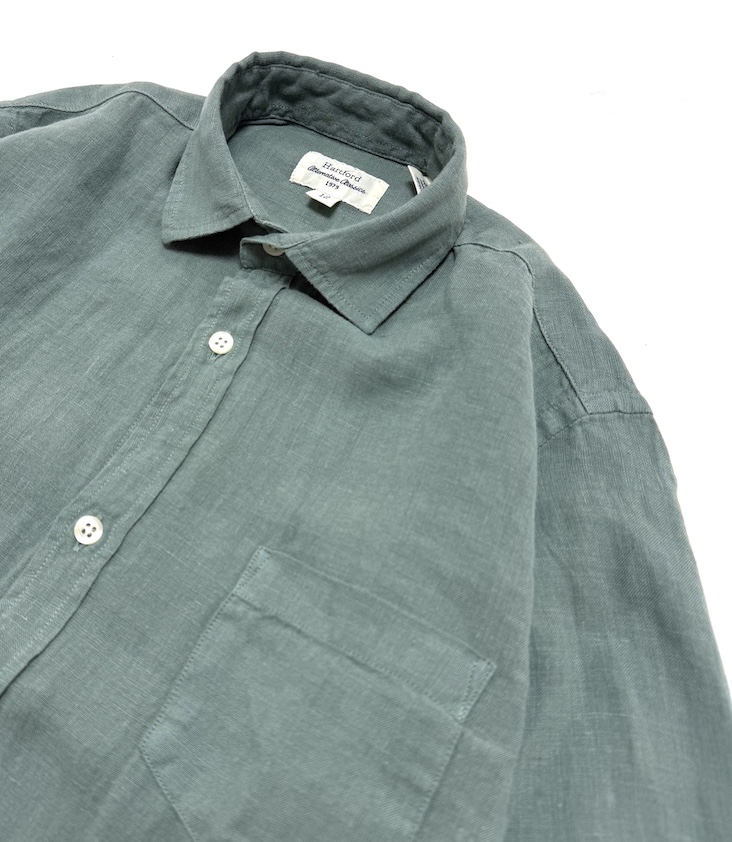 Classic shirt with breast pocket made from 100% linen