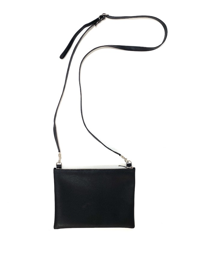 Shoulder bag made of leather, strap adjustable and removable.