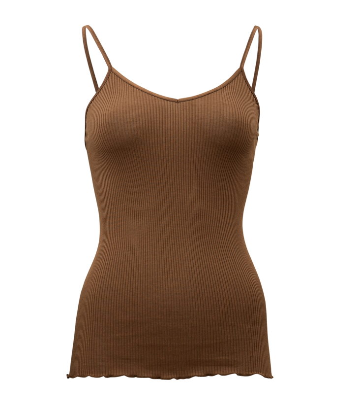 Seamless top with adjustable straps made from fine silk rib jersey