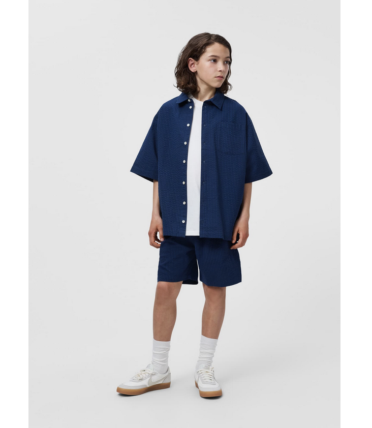 Kurzarm Hemd in leicht strukturiertem Musselin