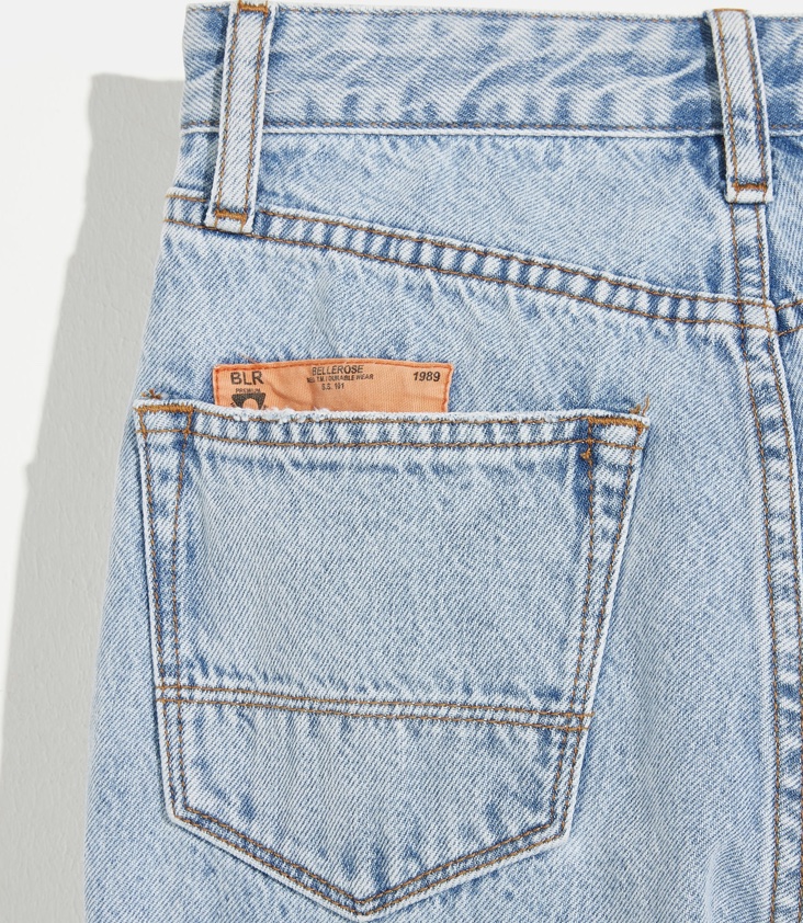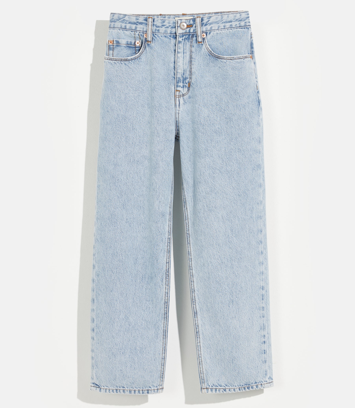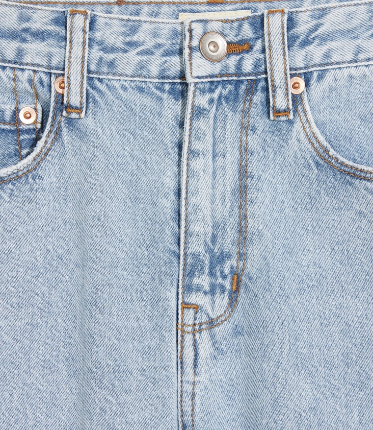 Five-Pocket-Jeans, breit geschnitten. Im Bund mit einem Gummi Grössenverstellbar.