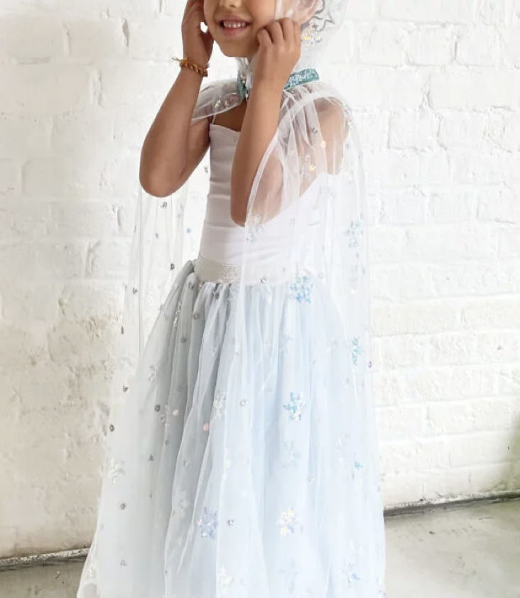 Paillettenbestickter Eisprinzessinnen-Umhang mit Kapuze aus Tüll