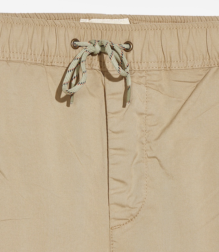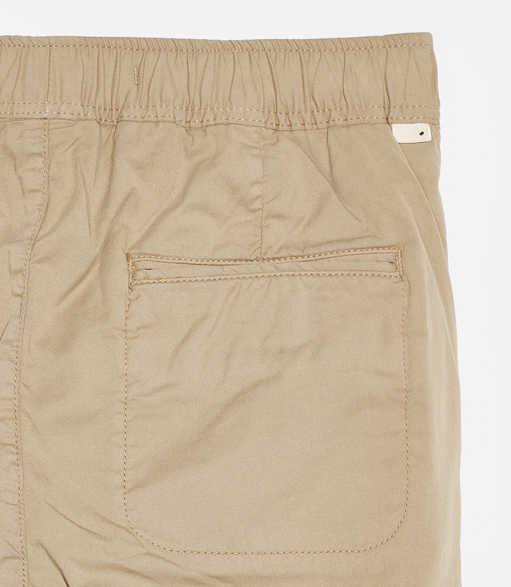 Stoffhose mit elastischem Bund, Eingriffstaschen und mit Tunnelzug.