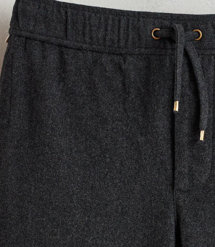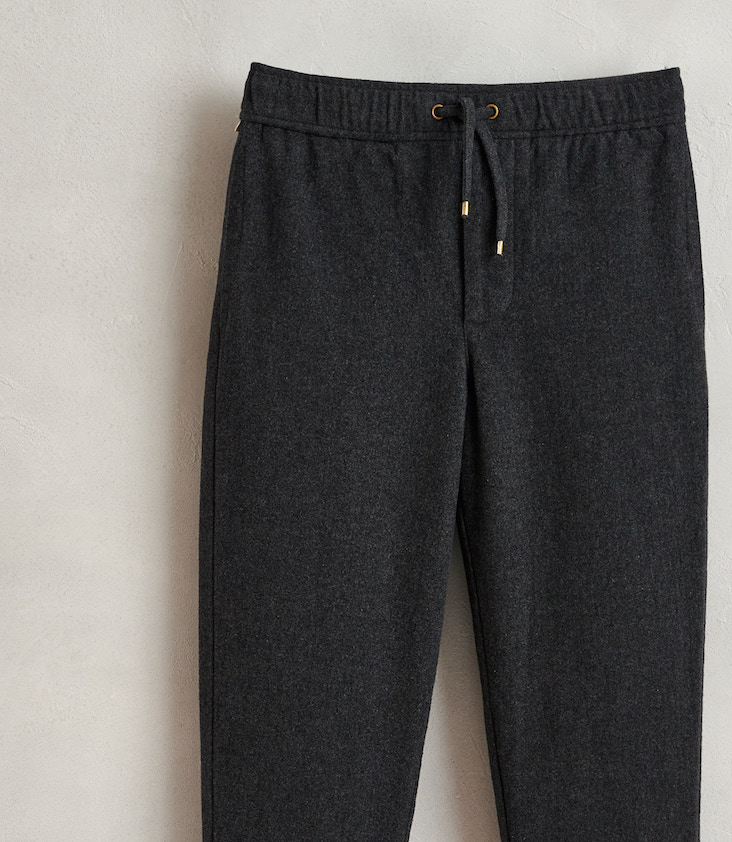 Stoffhose mit elastischem Bund, Eingriffstaschen und mit Tunnelzug.