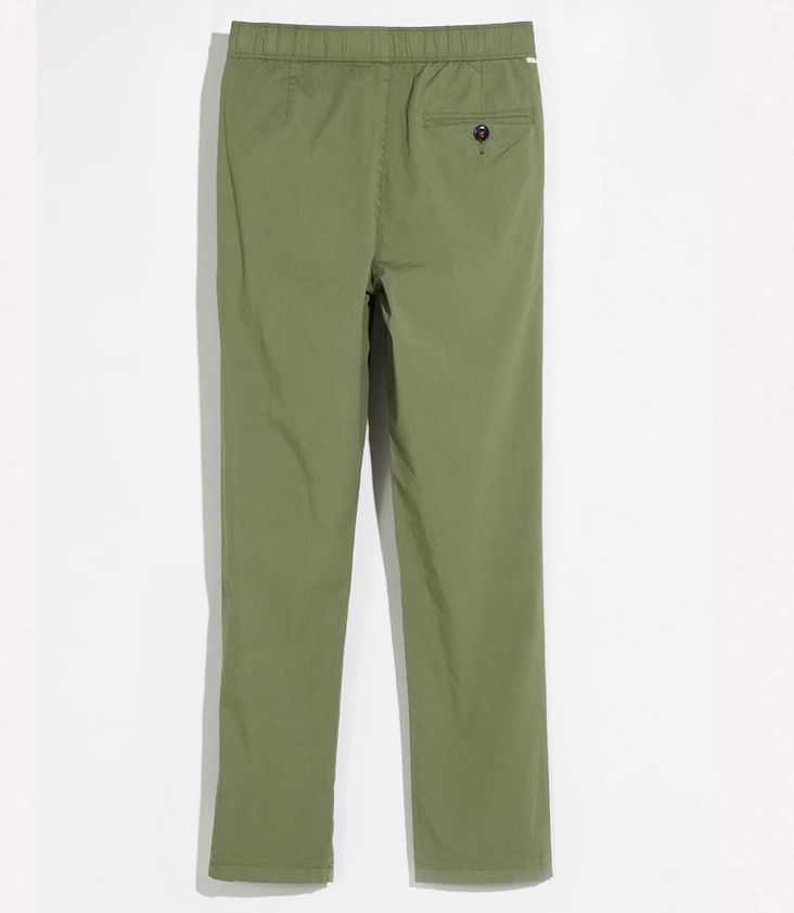 Stoffhose mit elastischem Bund, Eingriffstaschen und mit Tunnelzug.