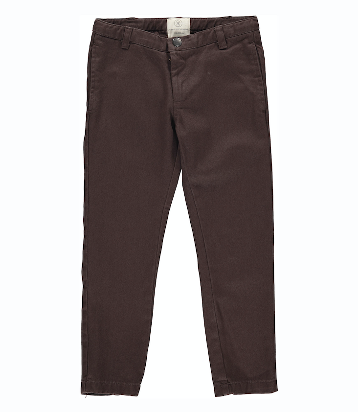 Gerade geschnittene Stoffhose mit Eingrifstaschen, mit Grössen verstelbarem Bund.
