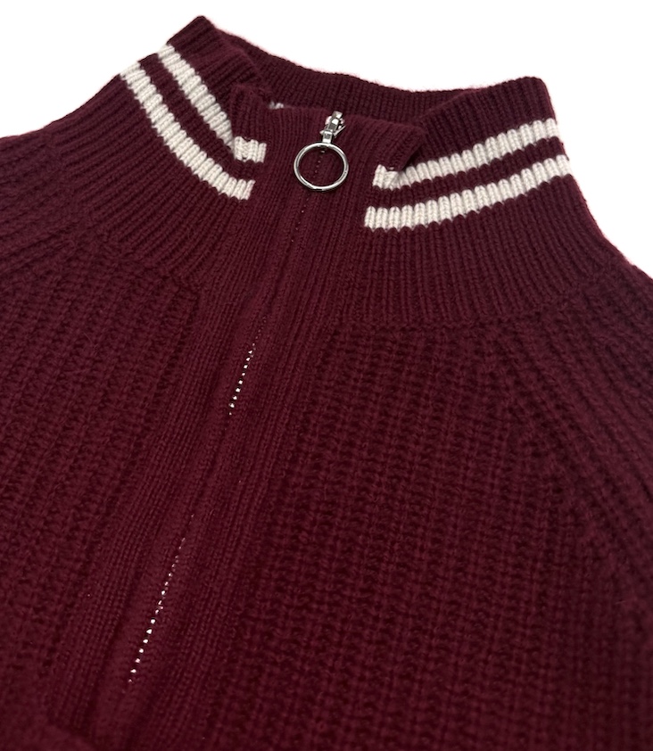 Superfeiner Strickpullver aus Lammwolle mit hohem Kragen und Reissverschluss, mit Raglanärmeln